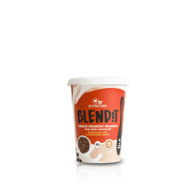Blend !T – Granola με κομμάτια Μαύρης Σοκολάτας + συσκευασία έτοιμης κουταλιάς 8gr Μέλι Ανθέων & Κωνοφόρων (εσωκλείεται στο κύπελλο). Ιδανικό για εκδρομές, το γραφείο, το γυμναστήριο, το σχολείο ή την παραλία.