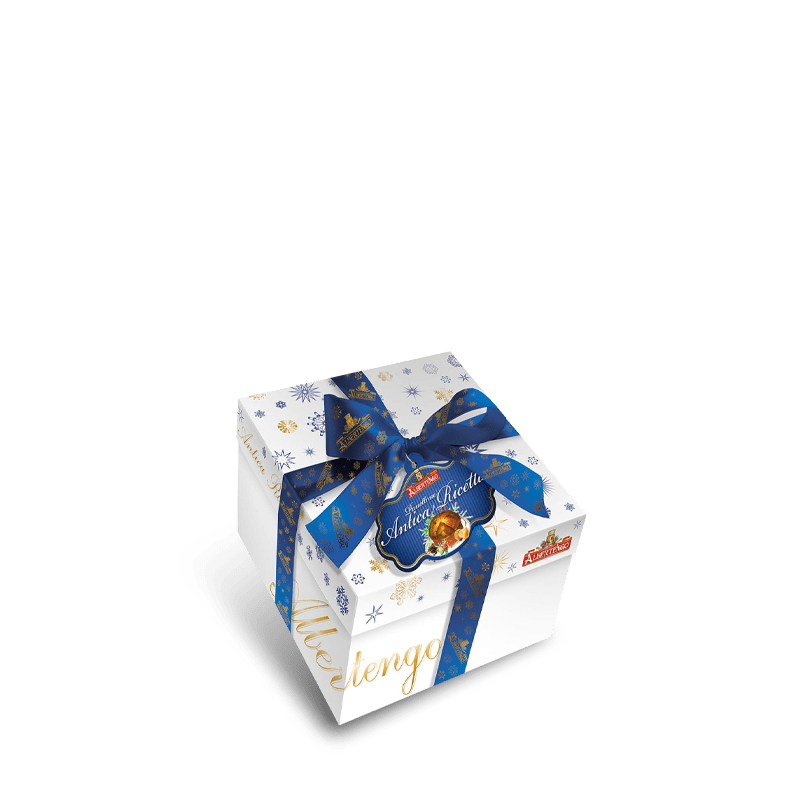 Χειροποίητο παραδοσιακό ιταλικό τσουρέκι με φρούτα και σταφίδες σε κουτί δώρου.