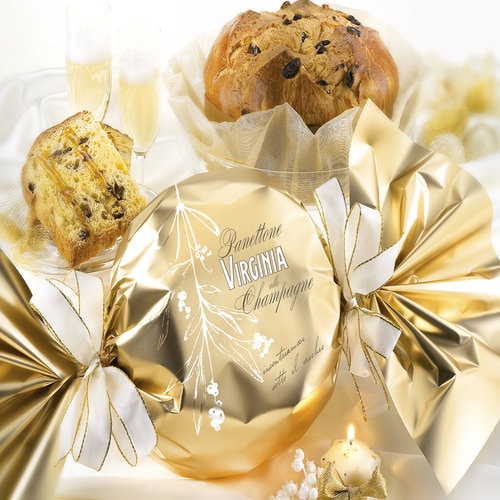 Χριστουγεννιάτικο ιταλικό τσουρέκι με κρέμα σαμπάνιας σε περιτύλιγμα καραμέλας.