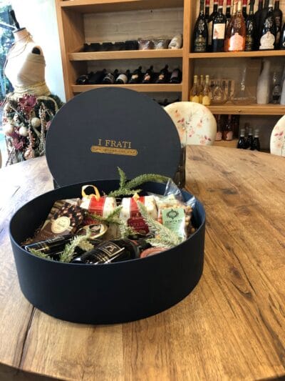 Μεγάλο στρογγυλό κουτί για 2 μπουκάλια και προϊόντα της επιλογής σας.