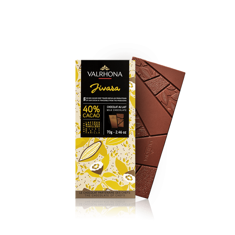 Η Jivara της Valrhona είναι μια εκλεπτυσμένη σοκολάτα γάλακτος, γνωστή για τη ζεστή, καραμελένια της γεύση και τις απαλές νότες βανίλιας και καβουρδισμένων κόκκων κακάο. Με ισορροπημένη γλυκύτητα και φίνα υφή, προσφέρει μια αυθεντική γευστική εμπειρία Valrhona, ιδανική για όσους αναζητούν ποιοτική, premium σοκολάτα.