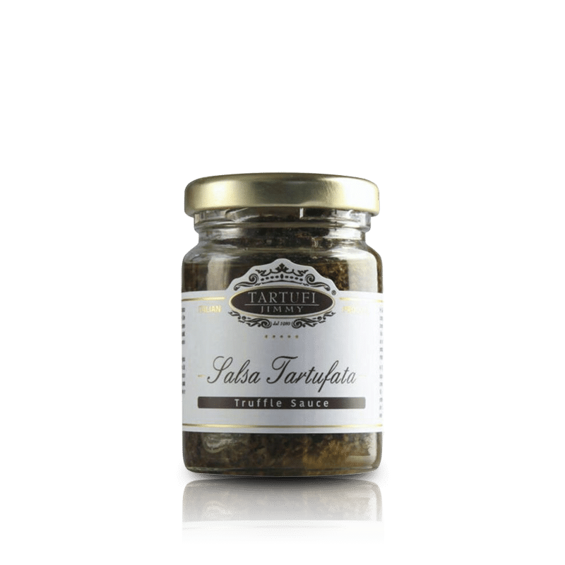 Η “TARTUFI JIMMY TRUFFLE SAUCE ” είναι μια έτοιμη σάλτσα μανιταριών με μαύρη τρούφα, ιδανική για ζυμαρικά, αυγά, ψωμί ή ως προσθήκη σε άλλες σάλτσες , συνδυάζοντας ευρωπαϊκά μανιτάρια (Agaricus bisporus)με εξαιρετικό παρθένο ελαιόλαδο και κομμάτια ιταλικής μαύρης και καλοκαιρινής τρούφας, προσφέροντας έντονη, umami γεύση σε μικρό βάζο 180 γραμμαρίων.