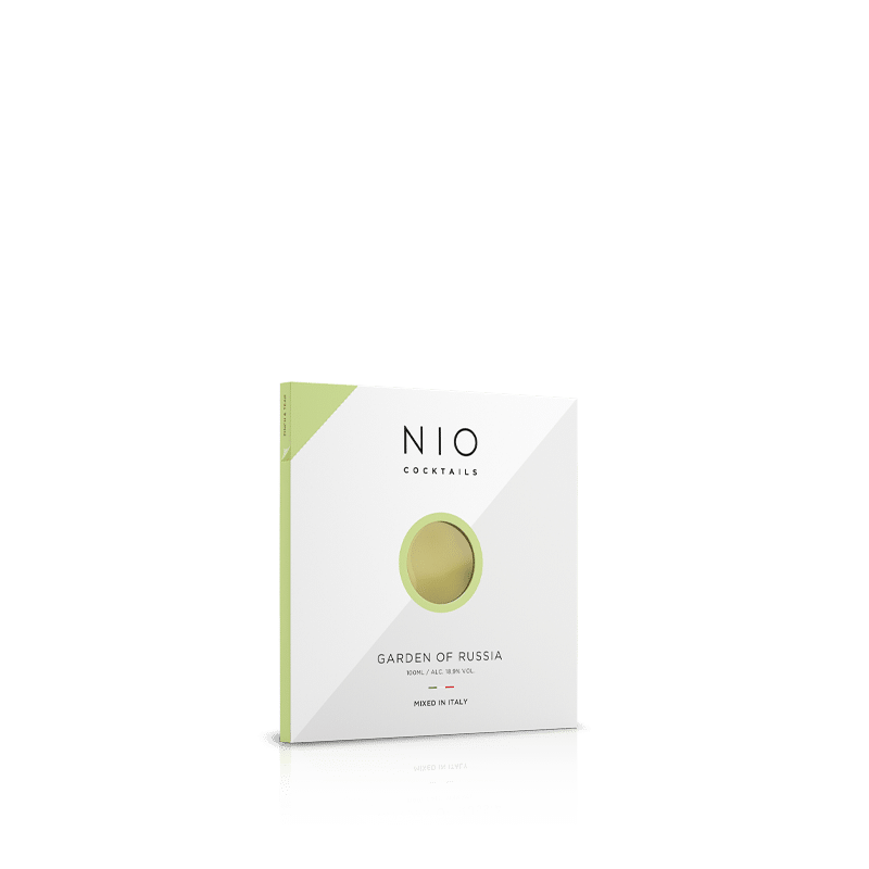 Τα Cocktails NIO – Needs Ice Only – παρασκευάζονται χρησιμοποιώντας τα καλύτερα επώνυμα ποτά. Το Gardens of Russia περιέχει Βότκα Ketel One, Bols elderflower λικέρ, Βιολογικό κιτρικό οξύ, Toschi σιρόπι ζάχαρης και νερό χωρίς την προσθήκη συντηρητικών ή άλλων χημικών ουσιών.