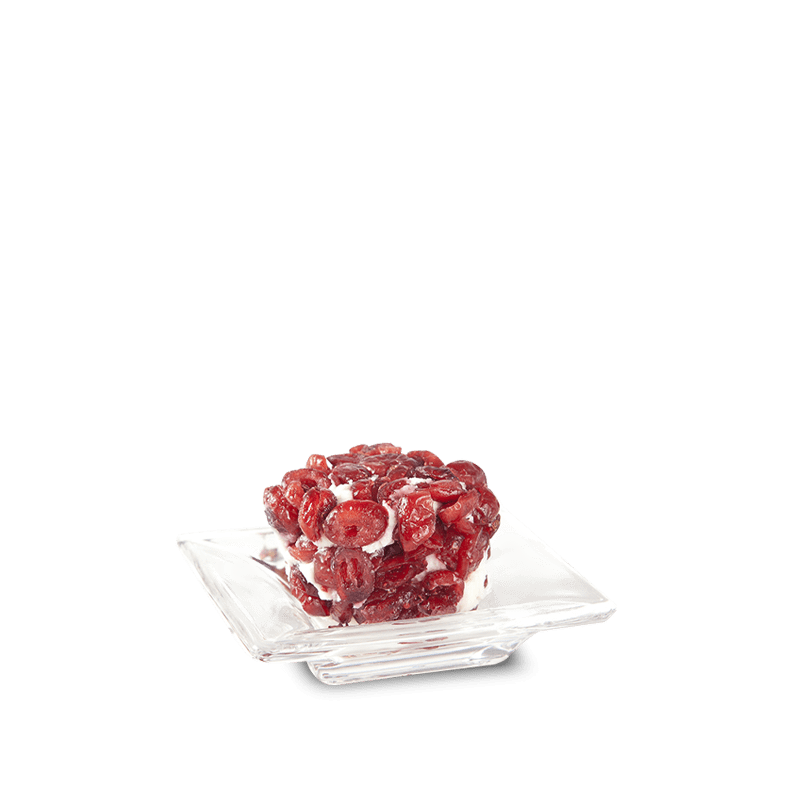 Φρέσκο κατσικίσιο τυράκι που καλύπτεται ολόκληρο με κράνμπερι, δίνοντας μια γλυκιά επίγευση.