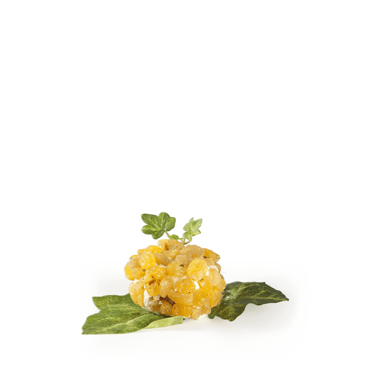Φρέσκο κατσικίσιο γαλλικό τυράκι που καλύπτεται ολόκληρο με ξανθιά σταφίδα.